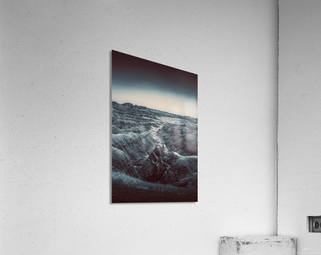 In the heart of the captivating Badlands of South Dakota lies a mystical locale known as the White River. Captured through the lens of infrared photography the invisible light image unfolds revealing a landscape painted in grayish blue hues and adorned with unique rock formations that resemble a meandering white river. As one delves into the scenerys vastness the rock formations ethereal qualities become apparent. The invisible light image captures the essence of the White River a mesmerizing path winding through the rocks. Flowing off the cliff the river widens in the distance inviting exploration along this enchanting and otherworldly pathway. The grayish-blue hues enhance the tranquility of the scene elevating the mystical ambiance of the Badlands. The White River brought to life in the magic of infrared stands as a captivating and unseen feature urging observers to ponder the secrets of natures artistry hidden within the invisible light. This tale of Whispers of Nature is a testament to the outdoor exploration opportunities that the Badlands of South Dakota present. The infrared enchantment with its grayish blue hues and the captivating White River beckons travelers to immerse themselves in the awe-inspiring wonders of this iconic destination where each glance unveils the whispered beauty of natures hidden pathways.