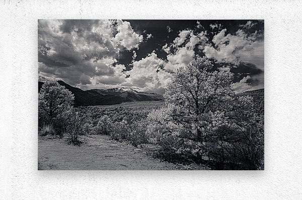 Embarking on the invigorating Scotchman Trail in the heart of Garden of the Gods Colorado Springs my journey led me to a breathtaking vista that left an indelible mark on my soul. As the trail wound its way through the majestic landscape a captivating view unfolded before me – a distant mountain peak cloaked in the mystique of black and white infrared. Capturing this enchanting moment the image titled Trail to Majesty invites viewers to join me on the path as it unfolds. Framed by the sturdy companionship of two pine trees the snow-kissed summit stands regally in the distance. The play of light and shadows masterfully rendered in monochrome adds a touch of ethereal beauty to the rugged terrain. As the trail progresses Trail to Majesty becomes a poetic narrative of the ever-changing landscape. The distant peak partially shrouded in the dance of clouds beckons explorers to venture further. Each step along the trail unveils new perspectives making the journey as enchanting as the destination. This black and white infrared photograph captures not just a moment but a passage through time and natures grandeur. Trail to Majesty invites you to traverse the winding path of Garden of the Gods where every twist promises a glimpse of the sublime and the distant peak remains an emblem of uncharted beauty.