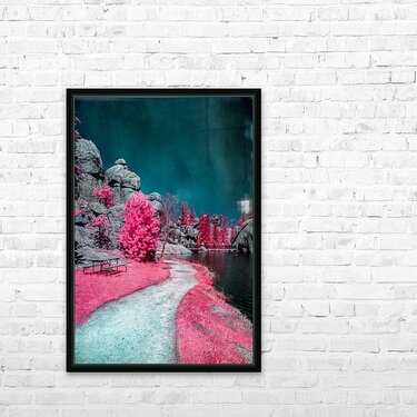 Basking in the warm embrace of a beautiful South Dakota day our journey led us to the picturesque Sylvan Lake in Custer State Park a serene haven cradled by natures allure. As we immersed ourselves in this tranquil setting the enchanting landscape unfolded offering endless opportunities to capture the timeless beauty gracing Sylvan Lake. Pink Serene Trails a mesmerizing glimpse into this idyllic escape captures a moment along the lakeside path where the alchemy of infrared treatment weaves a dreamy ambiance. The sky transformed into a soothing blue-green hue creates a celestial backdrop that harmonizes with the delicate shades of pink adorning the trees. Natures palette unfolds in a symphony of colors inviting you to lose yourself in the ethereal beauty of Sylvan Lake. As you wander the trail natures handiwork reveals itself through weathered boulders and a rustic picnic table positioned strategically to invite moments of quiet contemplation. The path winding behind a majestic dead tree adds an intriguing touch to this enchanting scene guiding your exploration through the heart of Sylvan Lakes natural wonders. Pink Serene Trails is a testament to the captivating beauty around every corner of Sylvan Lake. This South Dakota gem unveils its secrets with each step. The photograph invites you to join the journey where weathered elements and vibrant hues converge to create a tranquil reverie in the heart of nature. As you explore the serenity of Sylvan Lake may Serene Trails become a cherished window into the enchantment that defines this South Dakota haven.