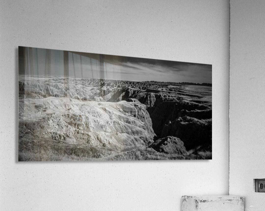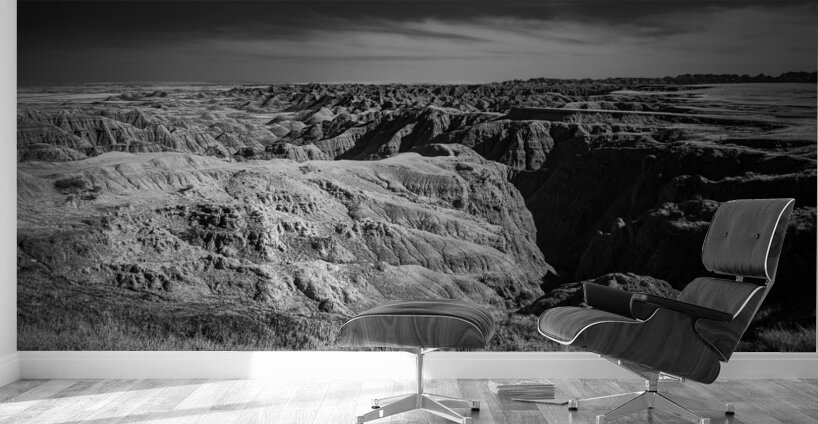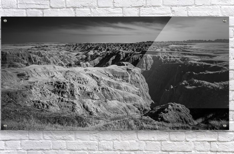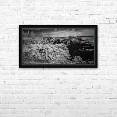 Embark on an unforgettable adventure as my wife and I journeyed through the captivating landscapes of the Badlands in South Dakota. Witness the breathtaking beauty of this rugged terrain where every shadow tells a story of mystery and intrigue. Step into a world where the shadows dance across the rugged earth revealing a landscape shrouded in enigma. The realm of sharply ridged hills and deep valleys is illuminated by a captivating play of light and shadow bringing texture and depth to every crevice. The horizon stretches endlessly beckoning the viewer to explore beyond the intricate patterns carved into the earth. In a black and white photograph that captures the essence of the lands ancient soul this artwork invites you to lose yourself in the Shadows of the Earth.