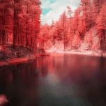 An invisible light Infrared Image of a fishing pond at the Grace Cooliage creek in Custer South Dakota.