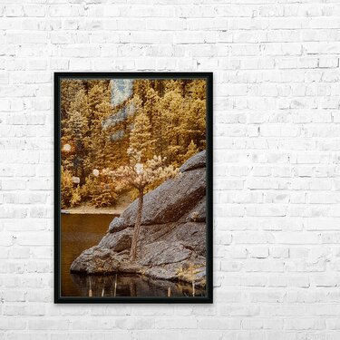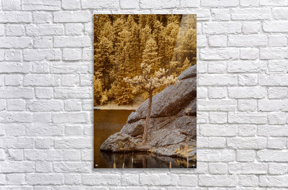 One tranquil afternoon I embarked on a solitary journey to Sylvan Lake nestled within the picturesque expanse of Custer State Park South Dakota. With my camera in tow I ventured forth to capture the serene beauty of the landscape in a unique light. As I traversed the winding trails encircling the lake I stumbled upon a breathtaking sight: a lone pine tree standing resolute upon a rocky outcrop amidst the tranquil waters. With the aid of my infrared lens the surrounding pine trees took on a mustard hue casting an enchanting glow upon the landscape. Against the backdrop of the lakes shimmering surface the solitary pine stood as a symbol of resilience and solitude. Beyond it a dense forest of pines stretched across the horizon their silhouettes bathed in the warm glow of the infrared spectrum. With a click of my camera I immortalized the scene capturing the essence of Sylvan Lakes tranquil majesty in all its splendor. The infrared image lent an otherworldly quality to the landscape transforming it into a realm of ethereal beauty. As I gazed upon the photograph I couldnt help but feel a sense of peace wash over me. In that fleeting moment amidst the quiet serenity of Sylvan Lake I felt a profound connection to the natural world and the timeless beauty it beholds.