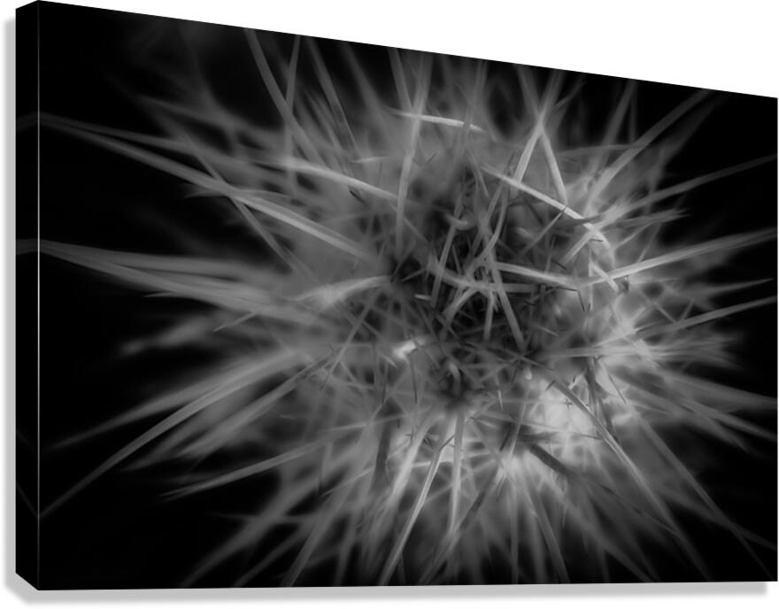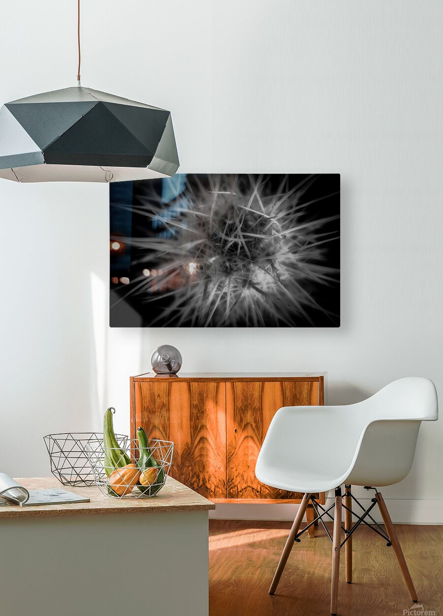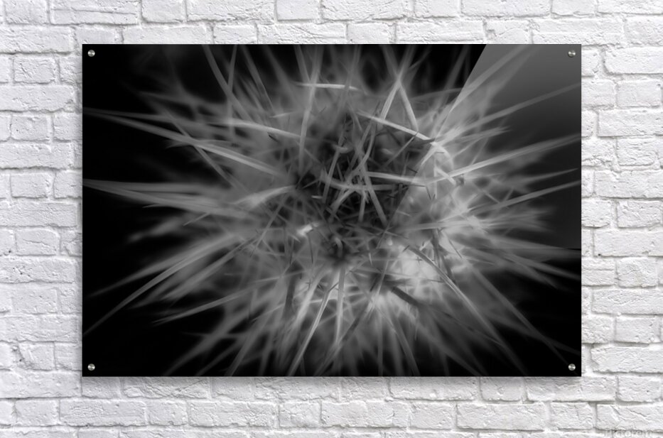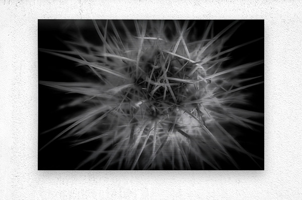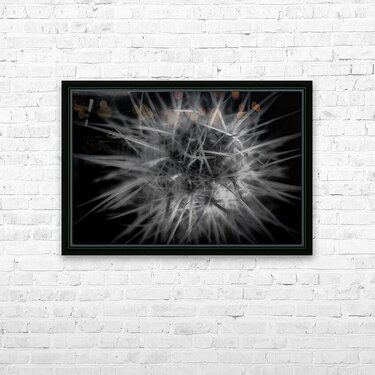hreading the Needle of Light" is an enigmatic masterpiece that whispers the mysteries of the cosmos through its intricate design. A monochromatic marvel, it features a dense constellation of sharp, radiant lines that burst forth from a central nexus, unfurling in an awe-inspiring spectacle. The lines, meticulously interwoven, conjure a vision that traverses the realms between the natural and the abstract, inviting the viewer to ponder the interconnectedness of all things. The interplay of starkly contrasting bright lines against a deep, shadowy backdrop adds a thrilling dynamism to this creation. The spiky tendrils, in their untamed elegance, project an energy that seems to surge beyond the bounds of the frame. It is as if the forces of creation and destruction dance together in a harmonious ballet, capturing a moment of cosmic ignition. Bathed in a luminous glow, this artwork challenges the observer to delve beyond its surface and engage with the layers of meaning woven within. Each glance draws one deeper into its labyrinthine patterns, suggesting hidden truths and secret pathways that beckon the soul on a journey of discovery. It stands as a testament to the power of light to both illuminate and obscure, leaving an indelible mark on the imagination.