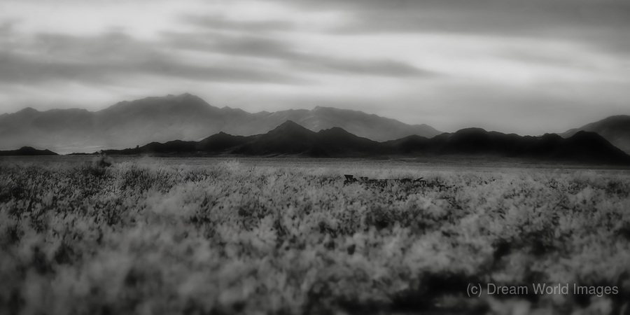 Waves of Solitude Across the Arid Horizon: A monochrome exploration of textured desert landscapes and undulating mountains beneath sweeping skies.