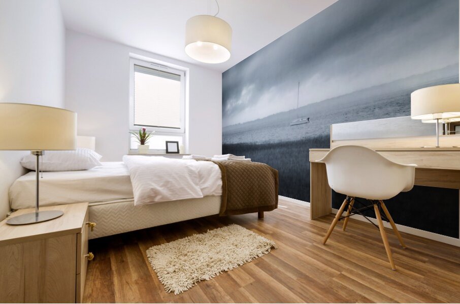Rainy Day Adventures: A Foggy Sailboat Tale in Saint Marys Geor  Wood print