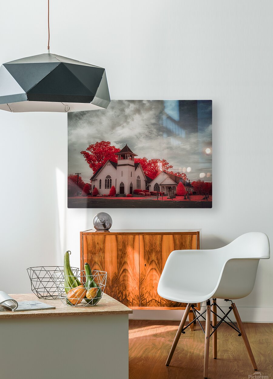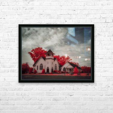 Where sacred meets surreal a white steeple pierces crimson dreams. Through infrareds revealing eye even familiar sanctuaries become gateways to wonder...[+]