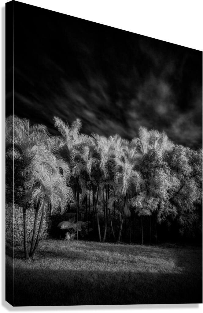 Where twilight weaves secrets through palm fronds shadows become storytellers in the gathering dark. Through nights gentle veil each tree writes poetr