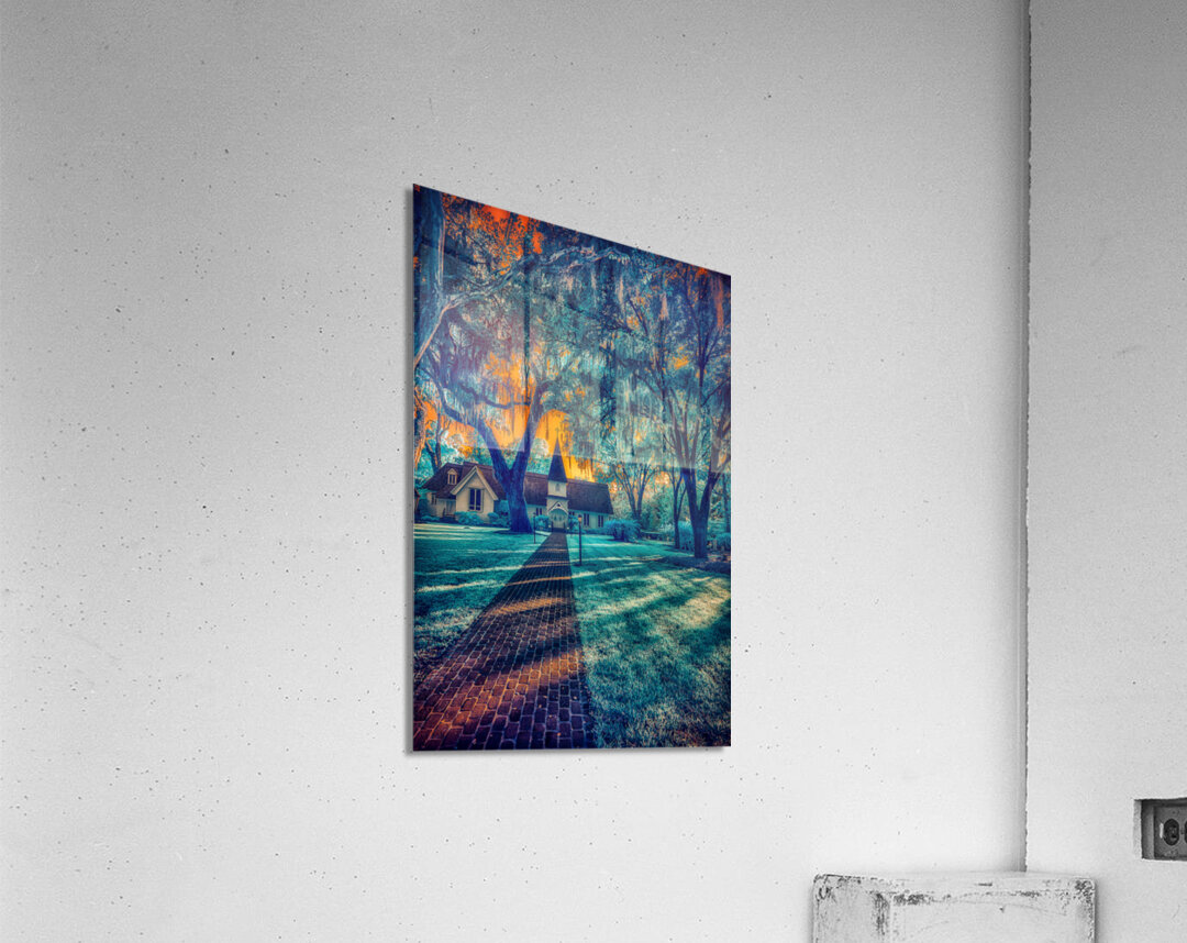 The Enchanting Christ Church on Saint Simons Island Georgia. Step into a realm of mesmerizing beauty with the Blue Church capture of Christ Church on Saint Simons Island Georgia. In this infrared masterpiece the iconic church is bathed in a golden sky surrounded by enchanting blue trees casting deep shadows and accentuated by pronounced sunrays. A journey prompted by whispers led my wife and me to this captivating site. As we beheld Christ Church the play of light and shadow the ethereal blue tones and the golden hues created a visual symphony. Titled Golden Hues and Ethereal Blues this photograph invites you to explore the mystical charm of a church that transcends the ordinary.