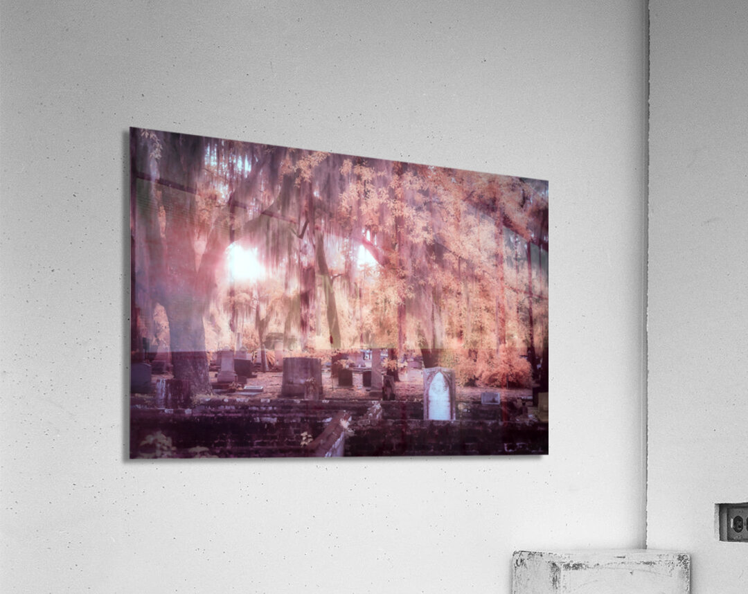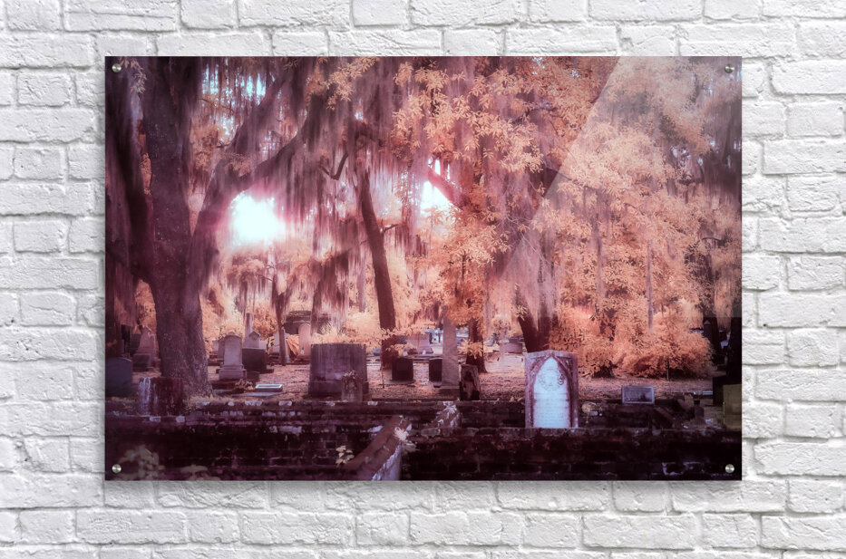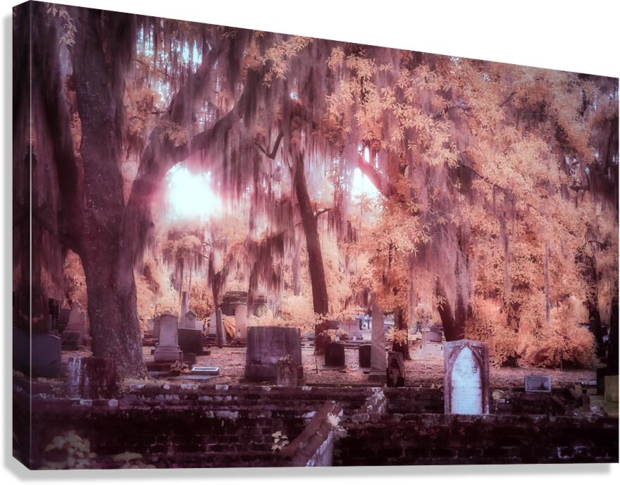 In the early days of spring my wife and I found ourselves drawn to the historical charm of Saint Marys Georgia. Our journey led us to the enchanting Oak Grove Cemetery a place filled with stories etched into the weathered walls and headstones beneath the ancient trees. As the day gently transitioned into the evening we witnessed a breathtaking sunset scene that unfolded with a moody infrared feel. The Spanish moss draped gracefully from the trees creating an ethereal atmosphere as the sun glowed through the branches illuminating the headstones and weathered walls scattered throughout the cemetery. This outdoor adventure became a journey through time and natures embrace. The serene landscapes of Oak Grove Cemetery took on a mystical quality capturing the essence of the coastal towns history and beauty. Each ray of sunlight filtered through the moss-covered branches painted a picture of tranquility and reflection. Our family travel to Saint Marys Georgia became a memorable experience with the moody sunset at Oak Grove Cemetery leaving an indelible mark on our hearts. The play of light and shadow the ancient trees and the weathered walls created a timeless scene reminding us of the enduring beauty found in the convergence of history and nature.