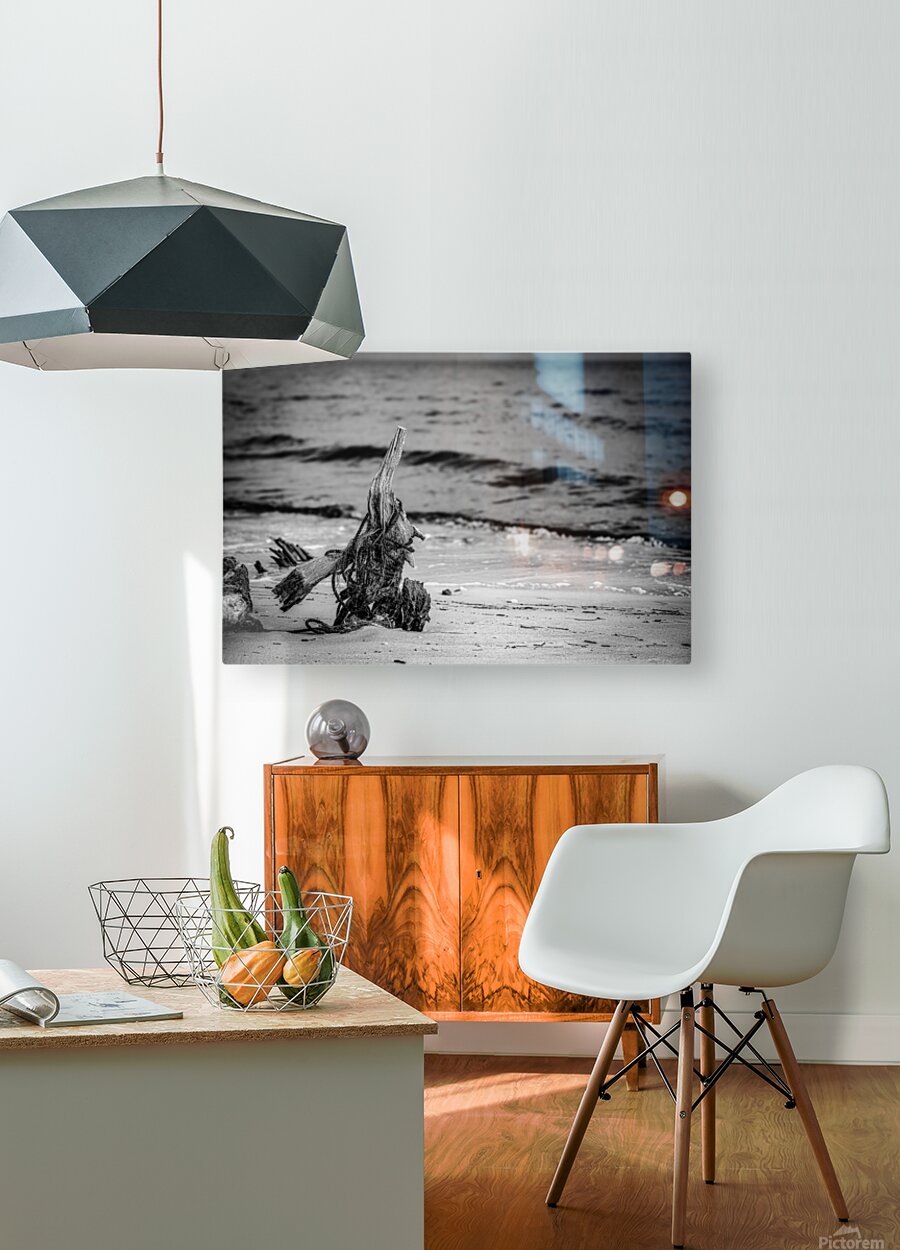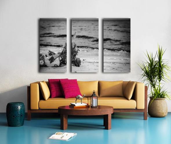 Get this artwork "Driftwood Rhapsody on Serene Sands" in a framed print.