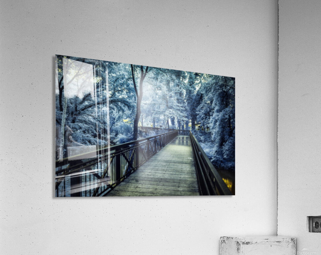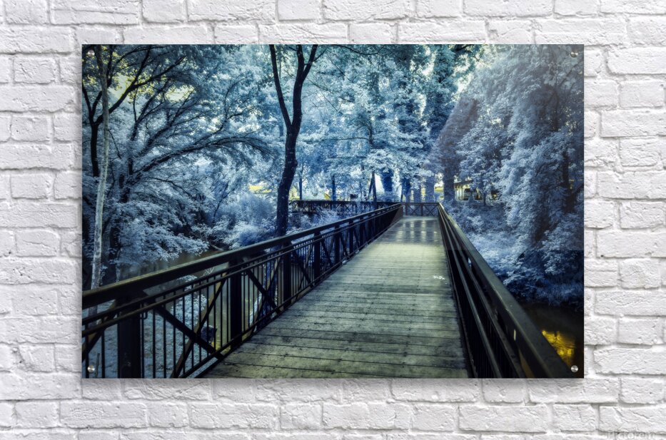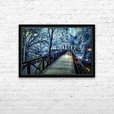 Embarking on an immersive journey through the renowned Jack Daniels Factory in Lynchburg Tennessee my wife and I were enthralled by this iconic distillerys rich history and timeless traditions. As we explored the hallowed halls of the facility we were captivated by the sights and sounds that encapsulated the essence of Jack Daniels legacy. Among the remarkable sights we encountered was a large vat adorned with the distinctive Jack Daniel logo—a symbol of craftsmanship and quality that has become synonymous with the brand. This iconic image captured in a mystical moody black-and-white infrared evoked a sense of intrigue and mystique inviting us to delve deeper into the storied heritage of the distillery. As our journey continued beyond the distillery we found ourselves drawn to a small footbridge leading into the town of Lynchburg. Bathed in a serene blue hue of infrared the bridge exuded a tranquil charm that beckoned us to cross into the heart of the town. Each step connected us to the rich history and vibrant culture that define Lynchburg. In this place time seems to stand still amidst the beauty of the Tennessee landscape. Together these experiences formed a tapestry of memories that celebrated the allure of Lynchburg and the enduring legacy of Jack Daniels. From the storied halls of the distillery to the quaint footbridges that lead into town our journey through Lynchburg was a testament to the timeless charm and captivating beauty of this iconic Tennessee destination.