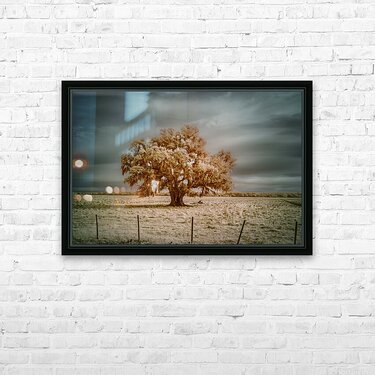 Where Spanish moss dances with copper light a lone oak writes its story across the sky. Through infrareds enchanted lens centuries of strength transfo...[+]