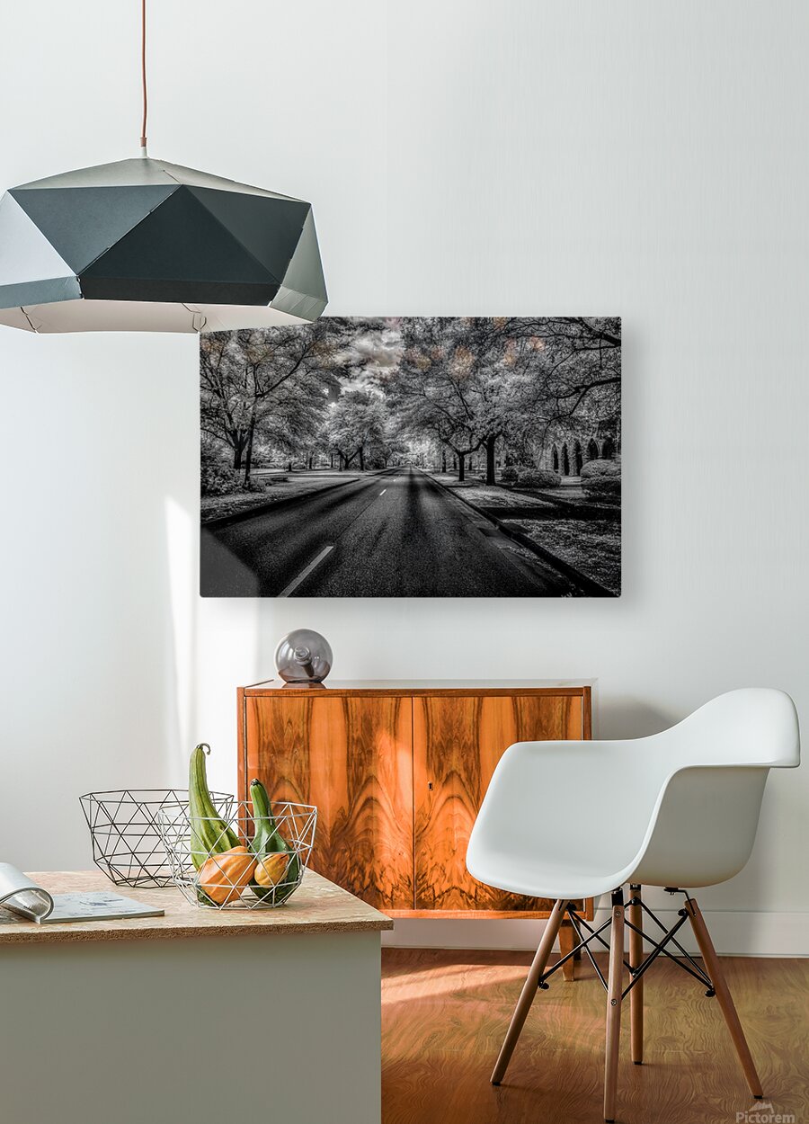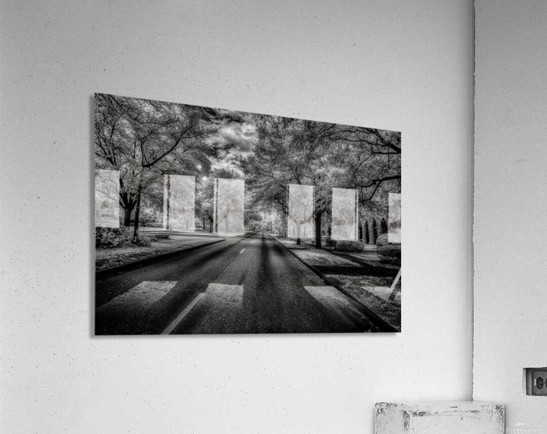 During our meandering drive through the charming streets of Eufaula Alabama my wife and I stumbled upon a visual marvel that begged to be captured. The historic town steeped in Southern elegance unfolded before us like pages from a bygone era. The main drive embraced by majestic oak trees beckoned us to immerse ourselves in its timeless charm. Stopping to savor the moment I set out to encapsulate the essence of Eufaula in a single frame. The result was a black and white infrared masterpiece a photograph that transcends the ordinary and unveils the towns soul. Titled Eufaula Elegance: A Monochromatic Journey Through Time the image captures the iconic drive framed by ancient oaks their branches forming a natural arch over the road. The magic of infrared photography lent an ethereal quality to the scene accentuating the crisp details of the architecture and the textured elegance of the overhanging oaks. As the infrared wavelength unfolded its unique narrative the towns history seemed to echo through the branches whispering tales of days long past. The play of light and shadows brought forth a captivating chiaroscuro effect rendering each detail with a poetic grace. The architectural gems along the drive stood as silent witnesses to the passage of time their stories unfolding in the monochromatic tapestry of the photograph. Eufaula Elegance is not merely a picture its a time-traveling experience an invitation to stroll through the corridors of history. It serves as a visual ode to a town where every cobblestone and every oak leaf has a story to tell—a story now preserved in the elegant dance of light and shadows.