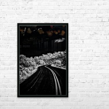 Symphony of Road and Foliage enchants with its magical interplay of light and shadow revealing an otherworldly journey. This infrared black and white
