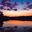 A serene lake perfectly mirrors the dramatic purple and orange sunset sky creating a natural symmetry between heaven and earth.