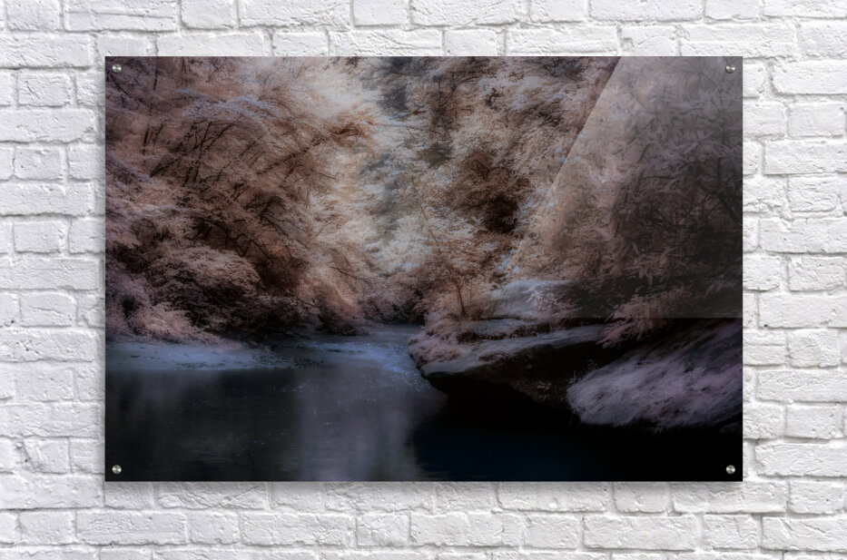 Where shadows meet stillness nature reveals her secrets in infrared light. Deep in Kentuckys hidden corners water holds the skys reflection while copper-toned cliffs cradle ancient pools in their embrace. Some places exist between reality and dreams - this is one of them. ?