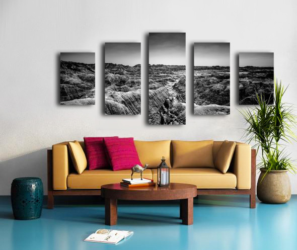 Get this artwork "Shadows of the Earth: Contours of Time in the Badlands" in a framed print.