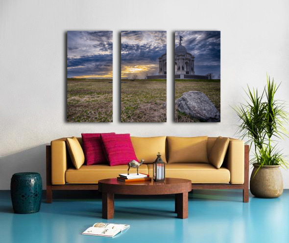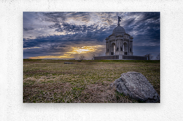 The Pennsylvania Monument stands majestic against a dramatic sunset at Gettysburg where history and nature create an unforgettable moment of remembrance. A testament to courage cast in marble and light.