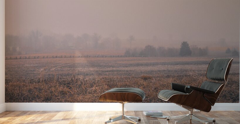 Dawn mist embraces Gettysburgs hallowed ground where a historic split-rail fence stretches across winter-worn fields. In this gentle morning light tim...[+]