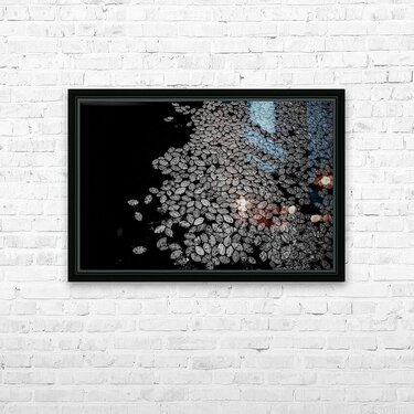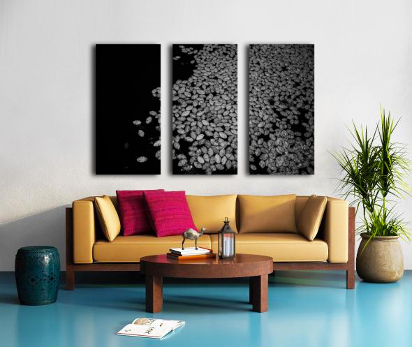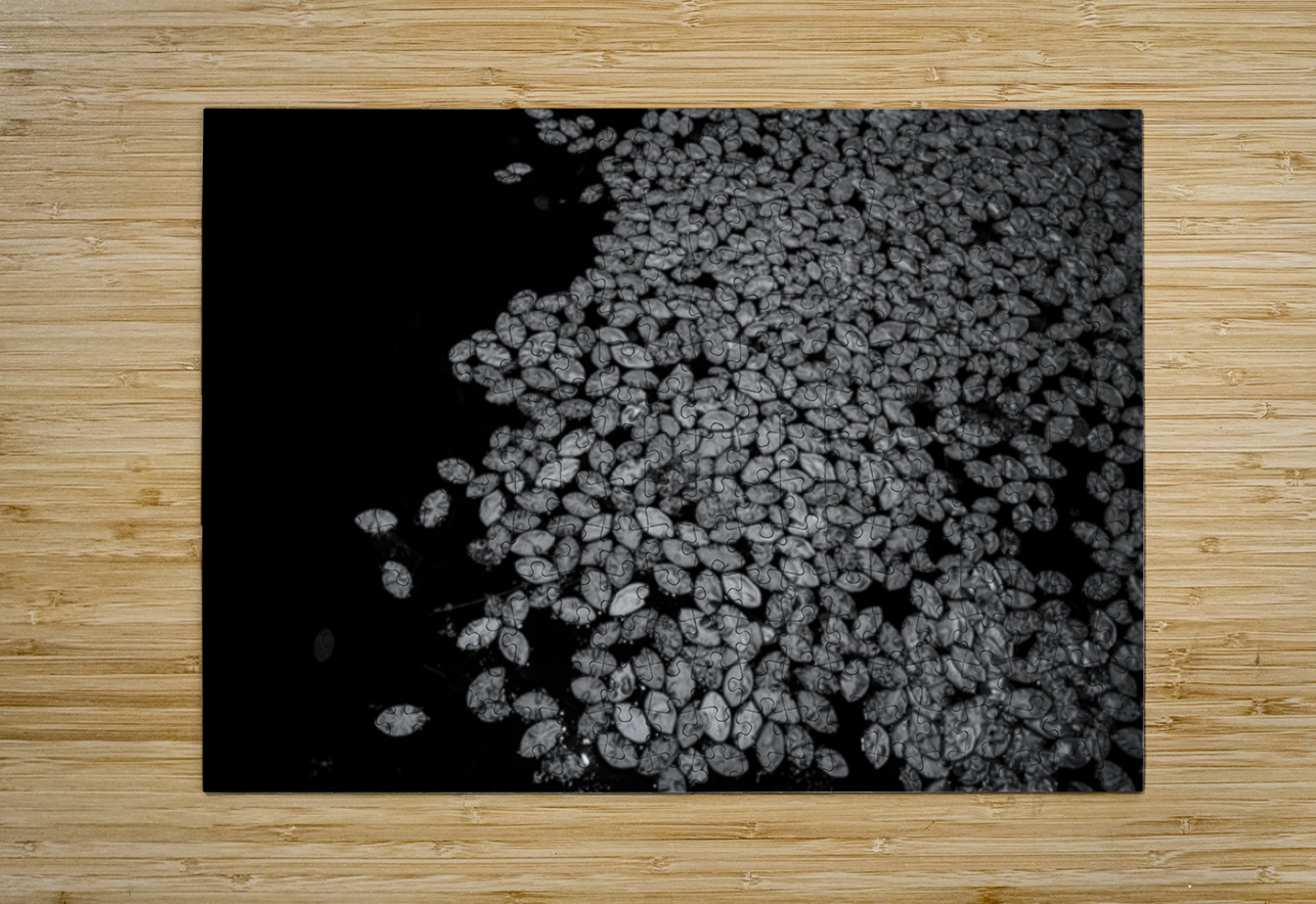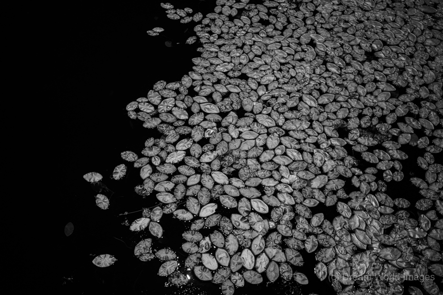 Enter a dream-like realm where lily pads gracefully dance upon dark waters their delicate forms illuminated by the gentle touch of light. A mesmerizin