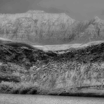 Through black and white artistry geological time reveals itself in bands of ancient stone where each stratum tells its own story of earths patient artistry. This dramatic study captures the raw architecture of desert formations where millennia of wind and water have carved natures own amphitheater. The composition transforms rugged terrain into a meditation on time itself inviting viewers to witness the poetry written in stone.