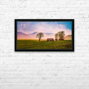 In the grip of Wyoming winter where snow meets shadow the Miller Cabin stands resilient against natures white canvas. Through the hushed afternoon light this historic homestead rests beneath snow-laden peaks while elk seek shelter in the valleys protected meadows. Part of the Serenade of Light collection this image captures that sacred moment when mountain storms pause to admire pioneer spirit.