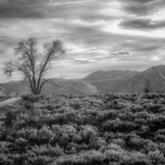 In the quiet embrace of mountain country where sage meets sky I discovered this moment when nature decided to speak in whispers. Through monochrome vision the familiar landscape transforms into a meditation on light and shadow where every element tells its own story of wilderness and time. A lone cottonwood stands sentinel against rolling hills its bare winter branches reaching skyward like natures own calligraphy. Below a sea of sage brush creates waves of texture across the valley floor each plant catching light differently creating a tapestry of silver and shadow. The mountains beyond rise in gentle waves their slopes holding secrets of seasons past and promises of springs to come. Some say the most profound moments in nature are found in these quiet scenes where simplicity speaks volumes. On this day as clouds painted their own stories across the winter sky I witnessed that truth. This isnt just a landscape - its a poem written in sage and shadow where every element from solitary tree to distant peak contributes to natures own symphony of silence.