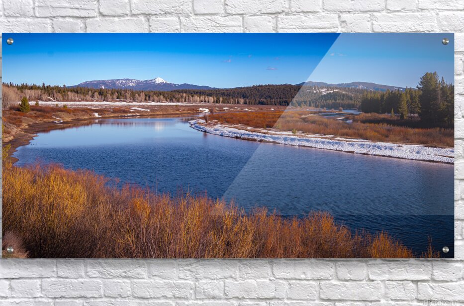 At the edge of a mountain lake in Grand Teton National Park where winter and water paint their own seasonal masterpiece I found myself captivated by natures perfect color palette. The late afternoon sun transformed shoreline willows into strands of copper and gold their reflection dancing on the deep blue water like natures own jewelry. Tracey spotted this composition first - she has an eye for these moments where color and light create something extraordinary. While Cooper explored the snowy patches along the shore we set up the shot watching as the low winter sun played across the rusty willows and highlighted the snow-dusted peaks beyond. The scene unfolded in perfect layers - amber willows in the foreground creating a warm frame for the cool blue water while patches of snow added their bright accents to the shoreline. In the distance evergreen forests climb the mountainsides leading the eye to those magnificent snow-capped peaks piercing the brilliant Wyoming sky. Some say the most beautiful winter scenes are those that remind us of warmth even in the cold. On this afternoon in the Tetons as golden light painted the willows and the mountains stood guard over their quiet lake I witnessed that truth. This isnt just a winter landscape - its a celebration of color and contrast where every element from water to willow contributes to natures own winter warming.