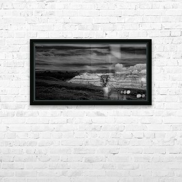 In the remote reaches of Theodore Roosevelt National Parks North Unit ancient badlands formations rise like monuments to the patience of geological time their layered walls telling stories that span millions of years. This powerful black and white composition captures the raw majesty of these sedimentary sculptures where wind and water have carved masterpieces from stone with the precision of master artists. The lone cottonwood trees nestled among the formations provide scale and life to this ancient landscape while the dramatic sky above mirrors the undulating rhythms of the earth below. Here where Theodore Roosevelt first understood the profound connection between conservation and national character we witness the same timeless beauty that inspired a president to become Americas greatest champion of wild places. These are not just rock formations - they are cathedrals of stone temples to endurance and reminders that some things are too magnificent to lose.
