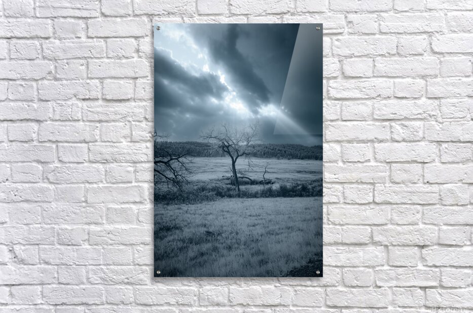 As my wife and I embarked on a captivating journey through the scenic landscapes of Custer South Dakota we found ourselves immersed in the serene beauty of natures untouched grandeur. Little did we know that our adventure would lead us to a captivating moment captured in a dramatic landscape scene of moody hues and ethereal beauty. As we meandered along the winding paths of the wildlife loop our eyes were drawn to a sight that stirred the soul—a solitary leafless tree standing proud amidst a grassy field its gnarled branches reaching out like ancient fingers to the sky. Cloaked in tones of blue the scene exuded a sense of age weathering and perhaps even a hint of chilliness in the air. Above the sky loomed heavy with textured clouds their depths pierced by rays of light cascading down upon the landscape below. This interplay of light and shadow added a dynamic element to the image enhancing its sense of depth and drama. Capturing the moment with my camera I felt a profound connection to the solitude and grandeur of the wilderness surrounding us. The monochromatic blue palette further enhanced the ethereal quality of the scene evoking a sense of quiet contemplation and the fleeting beauty of a moment captured in time. As we continued our journey through Custers enigmatic wilderness the memory of the isolated tree standing amidst the moody landscape stayed with us a reminder of the timeless allure and captivating beauty of the American West.
