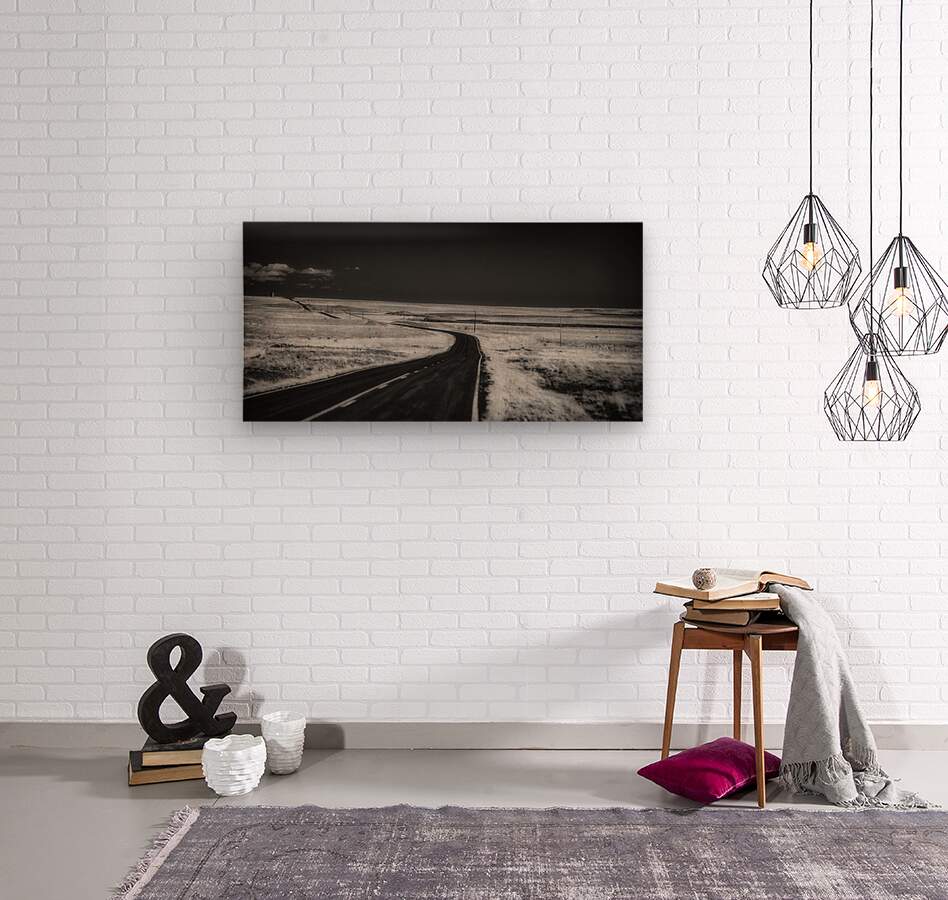 Long Black Road  Wood print