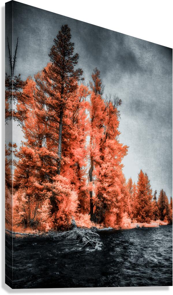 Lakeside Autumn Blaze   Infrared Fire Canvas print