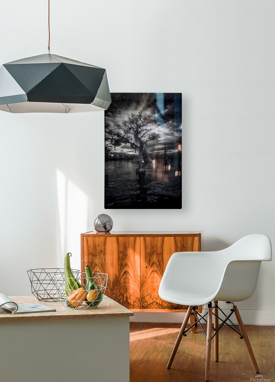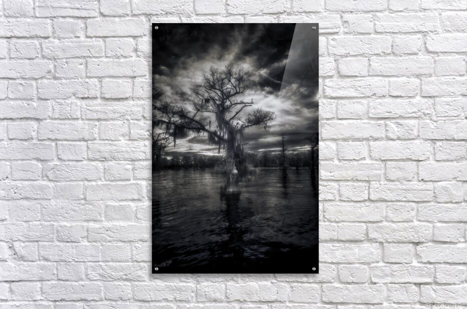 A lone cypress stands under a sky charged with prophecy its roots sunk deep in water that reflects both storm and serenity. The clouds swirl in patter...[+]