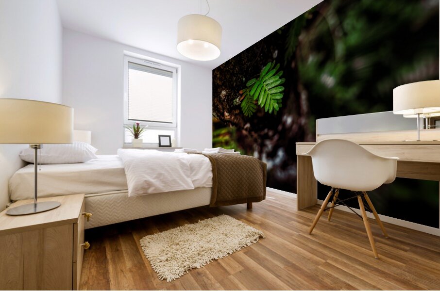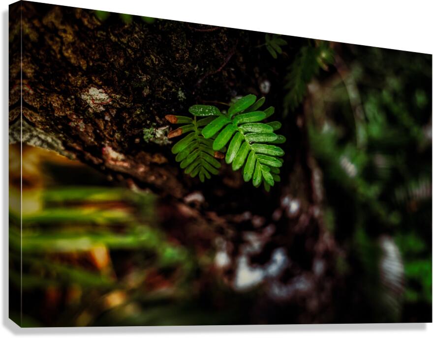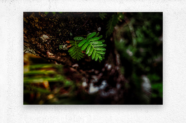 Nestled against ancient bark a single fern leaf reaches out—defiant hopeful quietly radiant. In the hush of the forest it stands as a symbol of resilience and gentle courage. Even alone it finds its place in the world illuminated by the dappled light of possibility.