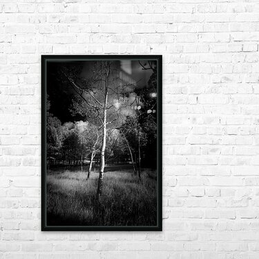 Years ago, I stumbled upon an image by Ansel Adams in a showcase—an enchanting grove of aspen trees in New Mexico. That photograph left an indelible mark on me, igniting a quest to capture the essence of that sublime moment. 'Ansel Aspen' is the result of that pursuit, an attempt to channel the spirit of Adams' iconic work. This black and white infrared image transports viewers to a small row of aspen trees, each one standing as a testament to the silent poetry of nature. The stark contrast between light and shadow lends an ethereal quality to the scene, reminiscent of the masterful touch Adams brought to his own works. The main aspen tree takes center stage, its delicate leaves painted in shades of white and gray. A subtle highlight on the right side accentuates the tree's elegant form, while the surrounding darkness enhances the drama, creating a visual symphony of contrasts. 'Ansel Aspen Reverie' stands as a humble homage to a photographic legend, a moment frozen in time where the quiet beauty of nature converges with the enduring legacy of Ansel Adams.