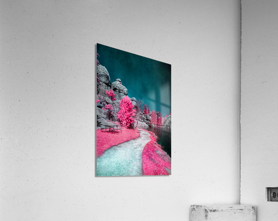 Basking in the warm embrace of a beautiful South Dakota day, our journey led us to the picturesque Sylvan Lake in Custer State Park, a serene haven cradled by nature's allure. As we immersed ourselves in this tranquil setting, the enchanting landscape unfolded, offering endless opportunities to capture the timeless beauty gracing Sylvan Lake. 'Pink Serene Trails,' a mesmerizing glimpse into this idyllic escape, captures a moment along the lakeside path where the alchemy of infrared treatment weaves a dreamy ambiance. The sky, transformed into a soothing blue-green hue, creates a celestial backdrop that harmonizes with the delicate shades of pink adorning the trees. Nature's palette unfolds in a symphony of colors, inviting you to lose yourself in the ethereal beauty of Sylvan Lake. As you wander the trail, nature's handiwork reveals itself through weathered boulders and a rustic picnic table positioned strategically to invite moments of quiet contemplation. The path, winding behind a majestic dead tree, adds an intriguing touch to this enchanting scene, guiding your exploration through the heart of Sylvan Lake's natural wonders. 'Pink Serene Trails' is a testament to the captivating beauty around every corner of Sylvan Lake. This South Dakota gem unveils its secrets with each step. The photograph invites you to join the journey, where weathered elements and vibrant hues converge to create a tranquil reverie in the heart of nature. As you explore the serenity of Sylvan Lake, may 'Serene Trails' become a cherished window into the enchantment that defines this South Dakota haven.