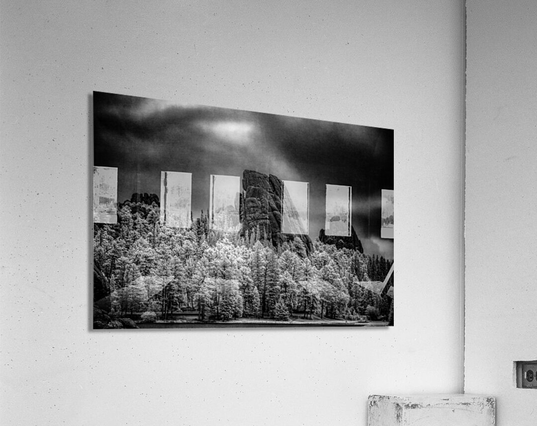 Venturing on an immersive journey to Sylvan Lake in Custer State Park, South Dakota, a spellbinding spectacle unfolded—a slight break in a dark cloud bank, casting an ethereal light on a prominent rock outcrop. The scene was captured through the lens of stark and moody black-and-white infrared photography and took on a dramatic allure. The smoke from Canadian wildfires, accentuated by the infrared filter, added an atmospheric touch to the landscape. The black and white infrared lens painted a mesmerizing tableau, emphasizing the contrasts between the dark cloud bank and the illuminated rock outcrop at Sylvan Lake. The slight break in the clouds allowed a radiant beam of light to pierce through, creating a captivating interplay of shadows and highlights. Exploring Sylvan Lake's scenic wonders became an evocative journey into nature's drama. The rock outcrop, bathed in the infrared glow, stood as a rugged testament to the park's natural beauty. The dark cloud bank and smoke from Canadian wildfires added an atmospheric layer that heightened the moody landscapes captured in the black-and-white imagery. As the stark and moody black-and-white infrared image unfolded, it became a testament to the outdoor photography opportunities Sylvan Lake presents. The interplay of light and shadows, accentuated by the smoke-infused atmosphere, invited visitors to immerse themselves in the dramatic landscapes of Custer State Park, South Dakota. This tale of Sylvan shadows, with its captivating rock outcrop and the interplay of light and dark, stands as a visual celebration of the scenic wonders waiting to be discovered. The black and white infrared image encapsulates the timeless and moody beauty of Sylvan Lake, offering a glimpse into the atmospheric landscapes that make it a must-visit destination in Custer State Park.