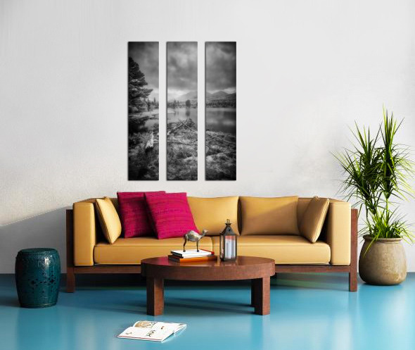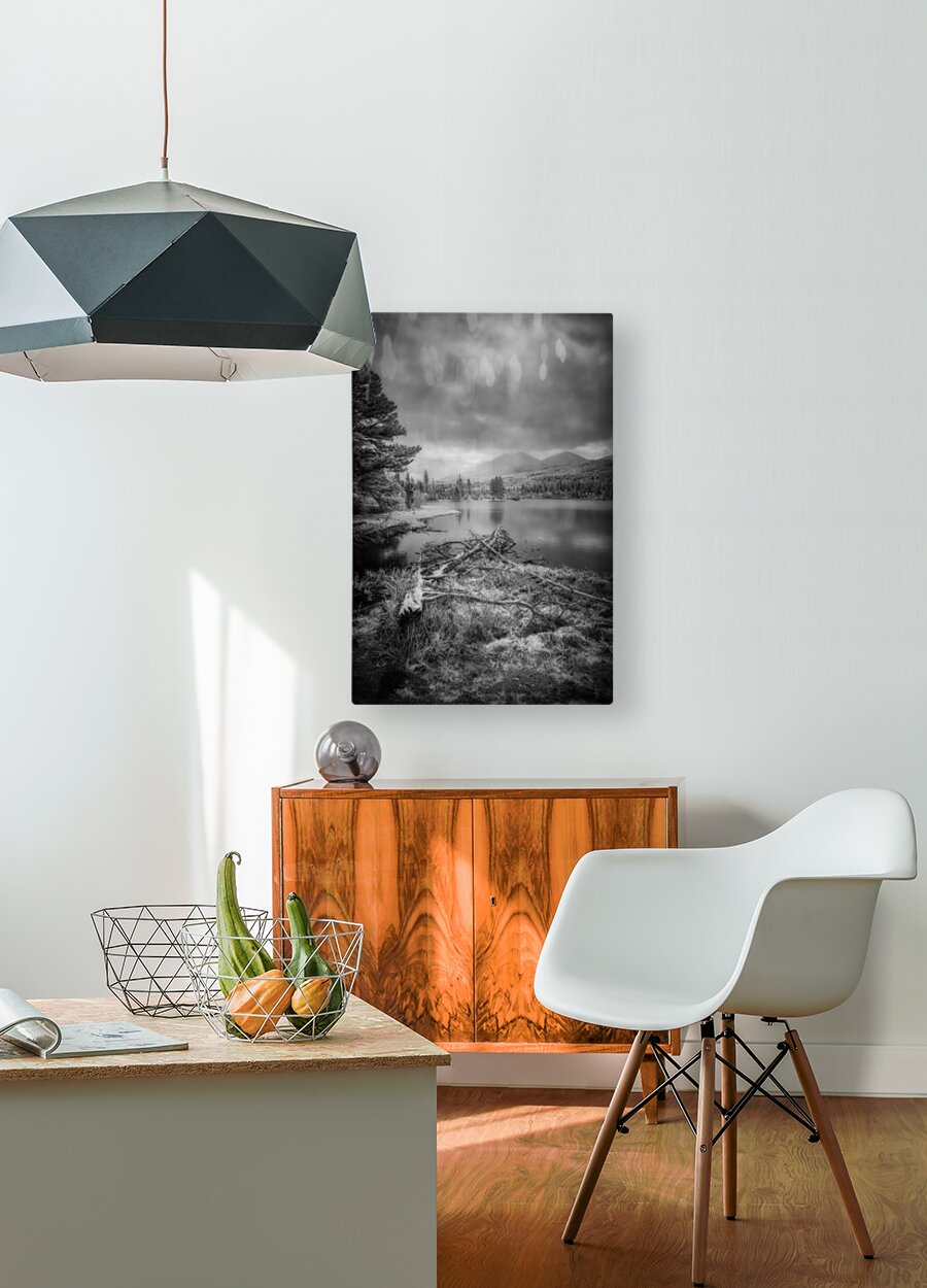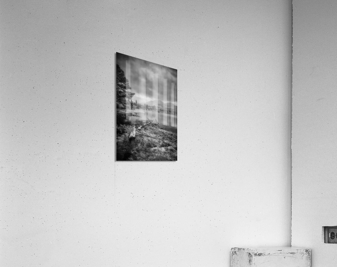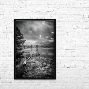 Step into a world of enchantment with "Fallen Sentinels," a captivating photograph that transports you to a tranquil mountainous landscape shrouded in