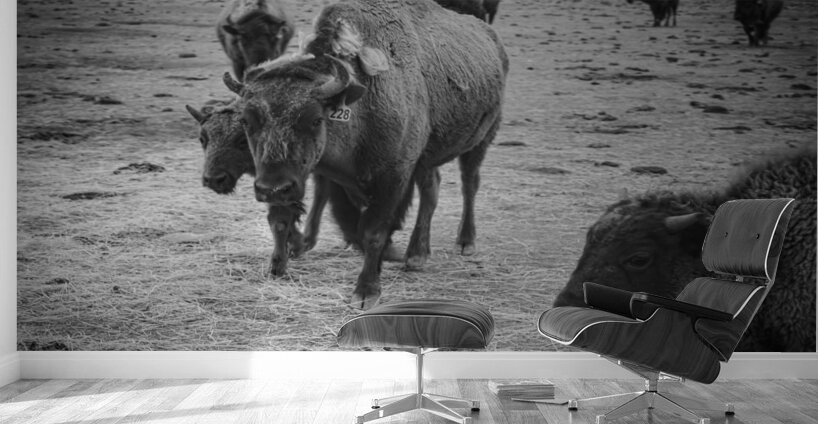 Step into the wild and wonderful world of Bison Momma with this stunning infrared black-and-white photograph. Immerse yourself in the beauty and majesty of a bison herd as they roam and graze in a serene outdoor setting. From the intricacies of their textured fur to the numbered tags on their ears, every detail is captured with crisp clarity. Marvel at the way the bison's horns and eyes catch the light just right, showcasing their strength and grace. The expansive sky in the background stretches forever, adding to this artwork's overall sense of tranquility and freedom. Transport yourself to a peaceful farm or ranch where these magnificent creatures roam free and experience the magic of Bison Momma for yourself. Whether you're a nature enthusiast, wildlife lover, or simply appreciate beautiful art, this photograph will surely captivate and inspire.