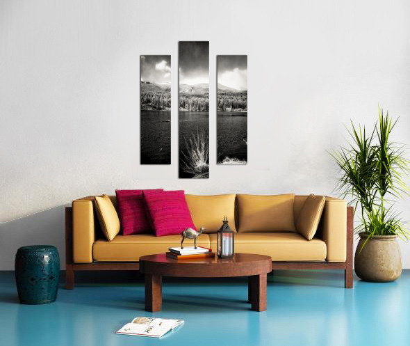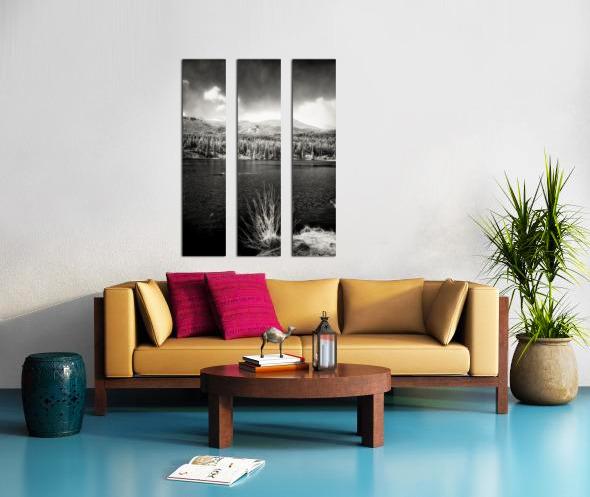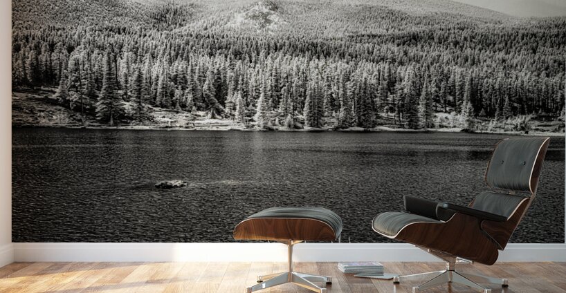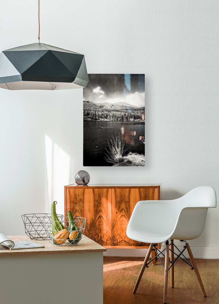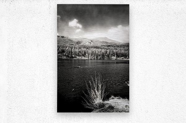 Step into a realm of enchantment with this captivating piece titled "Whispers in the Wilderness." It's like entering a magical world where mountains touch the sky, and trees stand tall like guardians of nature. The calm water reflects the clouds and the trees, making it seem like the sky and the earth are one. The black and white colors make the scene mysterious, like something out of a fairy tale. It's like you're stepping into a dream where anything is possible. The clouds above the mountains seem to dance and swirl, adding to the sense of wonder and awe. They're whispering secrets of the universe, inviting you to explore this mystical landscape. With "Whispers in the Wilderness," you can embark on a journey into a world where imagination knows no bounds and every corner holds a new adventure.