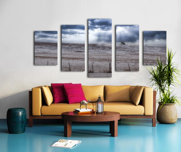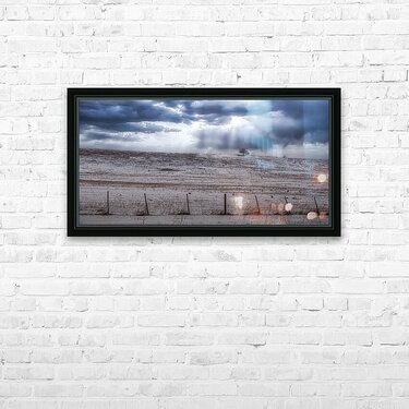Step into an enchanting world of winter wonder with this awe-inspiring piece titled "Winter's Solitude." As I immerse myself in its captivating scene, I am transported to a vast expanse of pristine snow-covered fields, where the soft, powdery snow crunches beneath my boots with every step. The air is crisp and still, filled with serene tranquility that envelops me as I take in the breathtaking landscape before me. A wire fence stretches across the horizon, adding an air of intrigue and separation to the otherwise untouched snowscape. Its stark contrast against the pure white snow only enhances the mystery and wonder pervading the scene. Above, the sky is a mesmerizing canvas of dark clouds and fleeting sunbeams, casting ever-changing shadows across the wintry landscape below. The interplay of light and shadow creates a sense of depth and movement, alluding to unseen elements at play beyond the horizon. In the distance, a solitary tree stands stoically on the edge of the landscape, its branches reaching towards the sky in a contemplative stance. Despite the barrenness of its surroundings, it stands as a symbol of resilience and strength, a testament to the enduring beauty of nature even in the harshest conditions. The harmonious blend of muted blues and whites creates a breathtakingly cold yet beautiful symphony for the eyes to behold. Each hue and tone seems to dance and swirl together perfectly, evoking awe and reverence for the natural world. As I stand amidst this enchanting winter wonderland, I can't help but feel a sense of peace and serenity wash over me. It's as if time stands still, allowing me to fully appreciate the beauty and tranquility surrounding me. With its mesmerizing blend of natural elements and captivating imagery, "Winter's Solitude" truly captures the essence of winter's beauty and wonder. It is a testament to the power of art to transport us to otherworldly realms, where the beauty of nature reigns supreme, and the soul finds solace amidst the cold embrace of winter's solitude.