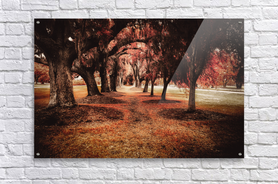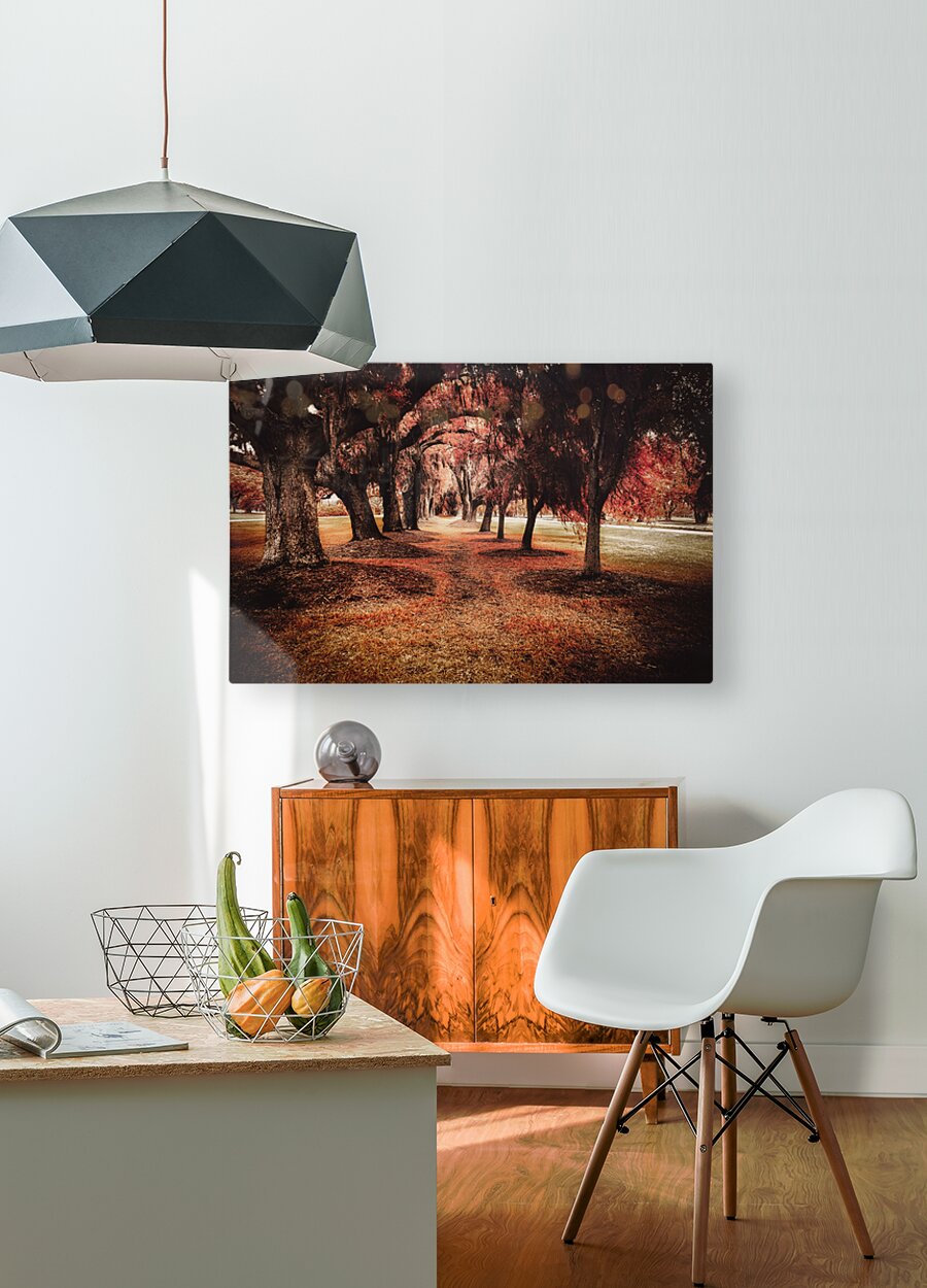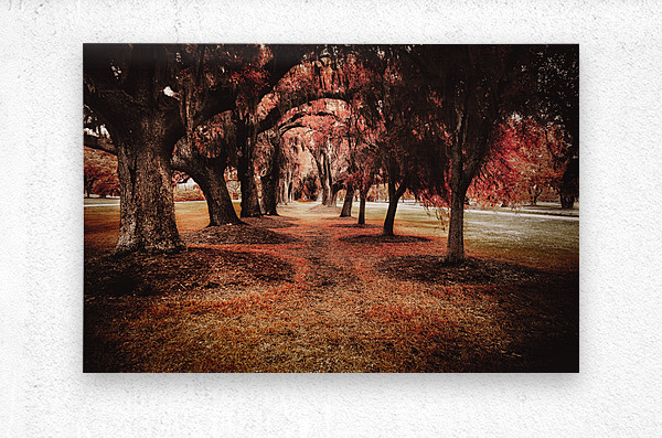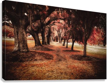 Get this artwork "Crimson Avenue of Oaks" in a framed print.