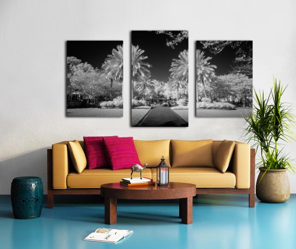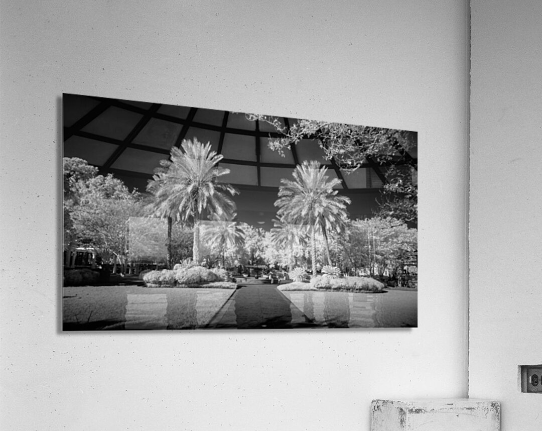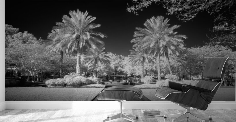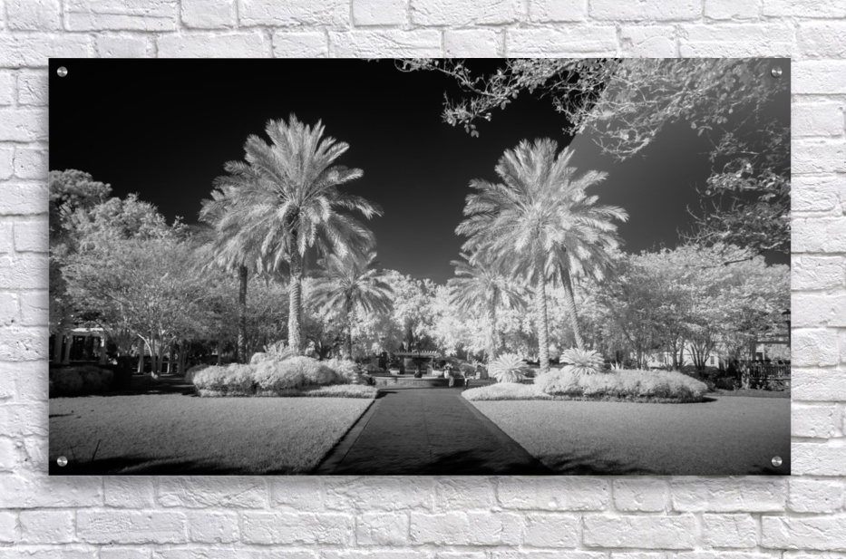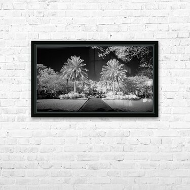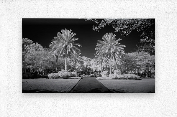A pathway captured in infrared of two palms flanking a walkway in Saint Maryrs Georgia.