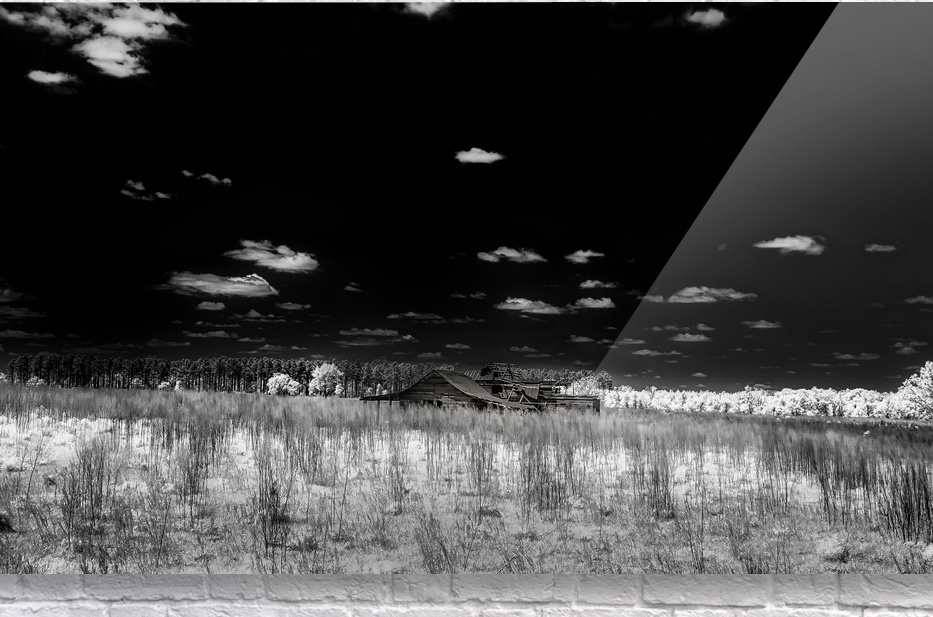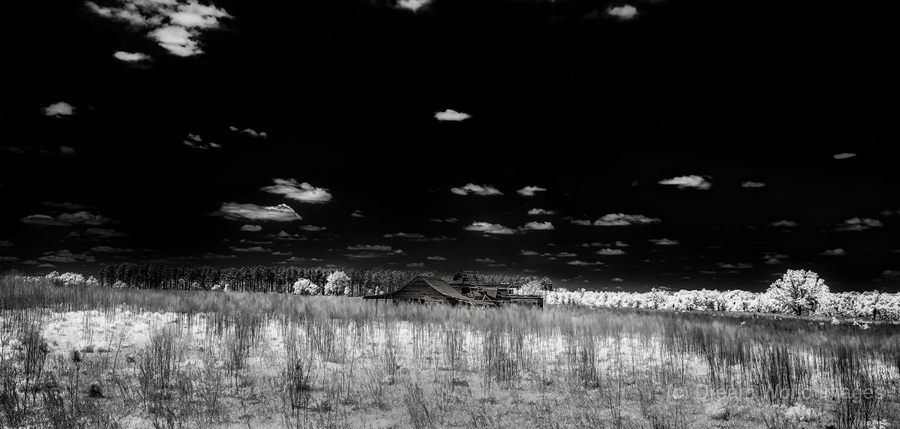 An infrared image of a homestead that has been forgotten in southern Georgia.