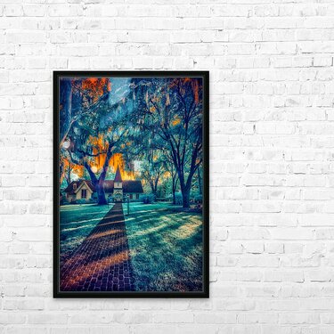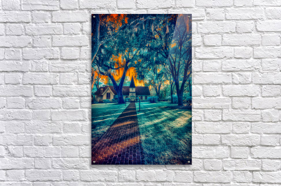Embark on a transcendental journey through the enchanting tale of Christ Church on Saint Simons Island, Georgia, where the captivating allure of the "Blue Church" unfolds in a mesmerizing infrared masterpiece. In this ethereal capture, the iconic church stands as a beacon, bathed in a golden sky, embraced by enchanting blue trees casting deep shadows, and illuminated by a golden sky. This sight transcends the ordinary and beckons you into a realm of mesmerizing beauty. Our journey to this captivating site was guided by whispers, a mystical call that prompted my wife and me to discover the enchantment within Christ Church's walls. As we beheld the majestic architecture, a play of light and shadow unfolded before our eyes, creating a visual symphony that resonated with the spiritual essence of the place. The ethereal blue tones dancing among the branches and the golden hues kissing the church's façade became a testament to the divine beauty woven into the fabric of Saint Simons Island. As part of our Spiritual Splendor series, "Blue Church," encapsulates the essence of this extraordinary encounter. The interplay of colors and shadows invites you to explore the mystical charm of Christ Church, where every detail seems painted by the brushstrokes of the divine. The transcendental beauty captured in this image is more than a mere representation—it is an invitation to immerse yourself in the sacred atmosphere that permeates the church grounds. As you delve into the photograph, the enchanting blue trees cast deep shadows, and the golden sky radiates warmth, inviting contemplation and reflection. Christ Church becomes a sanctuary where time stands still, and the whispers of the past echo through the air. "Golden Hues and Ethereal Blues" is more than a photograph; it is a window to a world where the ordinary transforms into the extraordinary, and the spiritual journey unfolds in the heart of Saint Simons Island, Georgia.