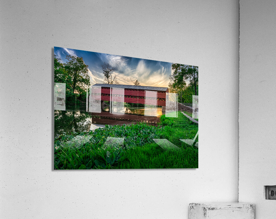 Get this artwork "Serene Sunset Behind Sachs Covered Bridge" in a framed print.