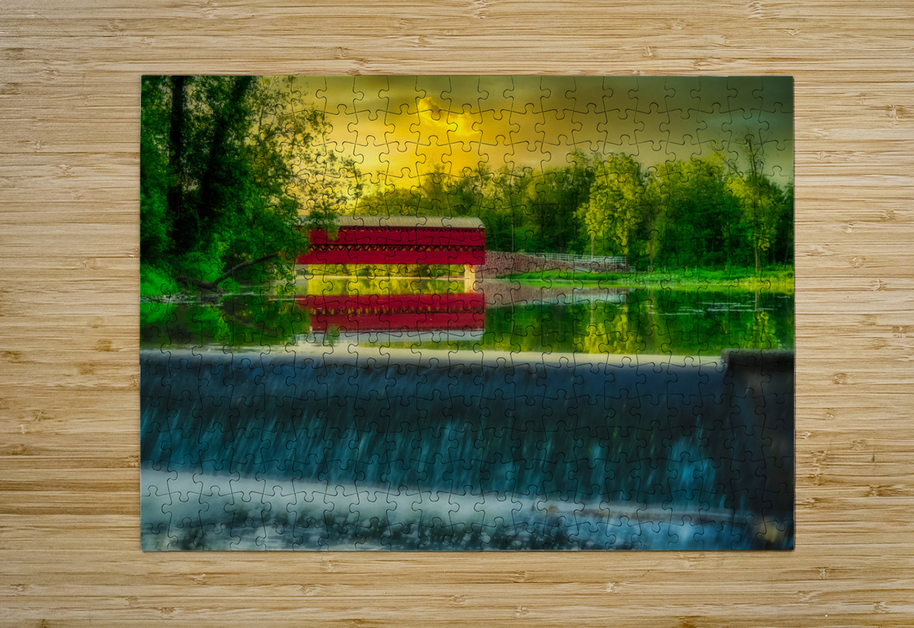 Tranquil Reflections: A Captivating Sunset at Sachs Bridge Dream World Images Puzzle printing