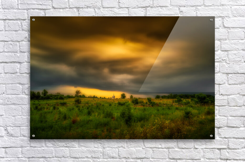 Enter a realm where the earth converges with the sky, showcasing a stunning spectacle of unfiltered beauty and formidable force. "Solitude in the Storm" encapsulates the essence of nature's theater, with brooding clouds swirling above a tranquil landscape. This 4-minute long exposure image is captured at the heart of Gettysburg, with the tempest directly positioned over the iconic Pennsylvania Monument. In the midst of the turmoil, a solitary structure (the Pennsylvania Monument, the tallest on the battlefield) stands as a silent guardian enveloped in the gentle glow of dawn or dusk. The scene illustrates the serene resilience of the rural surroundings, where solitude seamlessly merges with the ever-changing dynamics of nature. Embark on a journey through this enchanting scene, where time appears to halt, and the land whispers its secrets to the fortunate few. Immerse yourself in the awe-inspiring might of nature and observe the graceful interplay of light and shadow in this mesmerizing vista. The energy of the storm as it traverses above the monument leaves a profound sense of tranquility and awe.