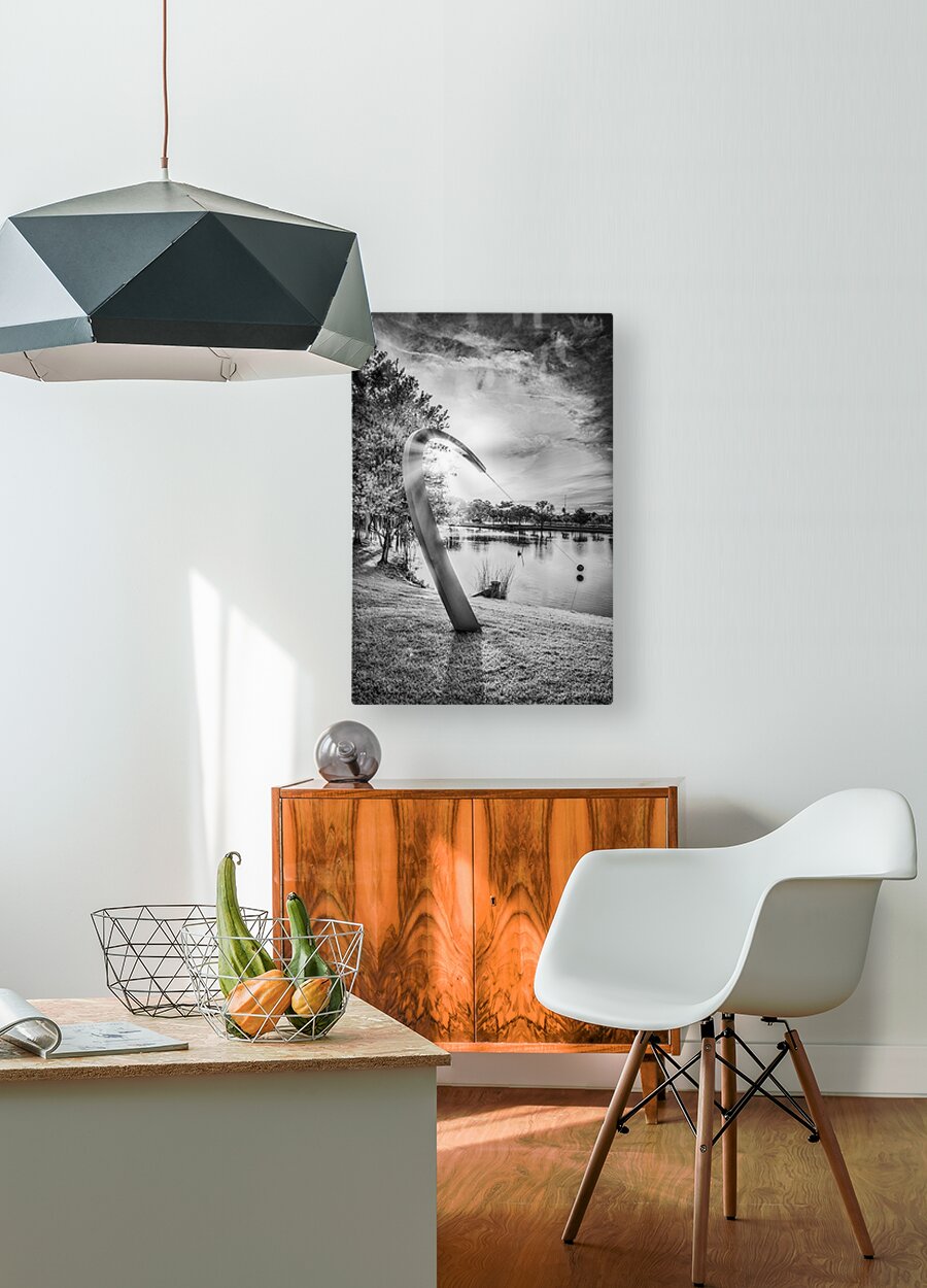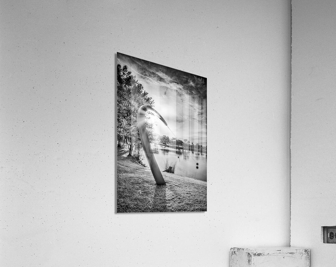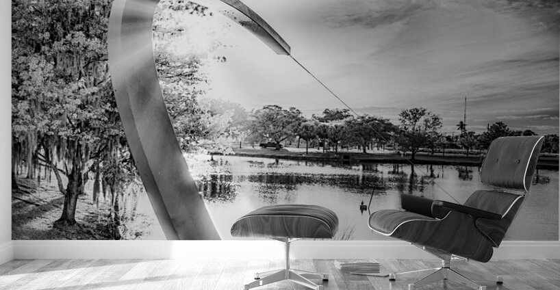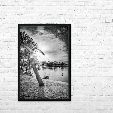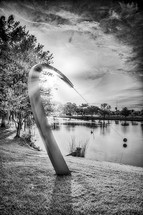 Transport yourself to a realm where art and nature intertwine in a captivating dance at Ocala's small-town lake. At the heart of this visual narrative stands the fishing rod sculpture, not merely an artistic element but a transformative conduit. It serves as a bridge connecting the observer to the profound tranquility that defines the essence of this lakeside haven. The meticulous black and white infrared treatment of the image elevates it beyond the ordinary, inviting contemplation and sparking a moment frozen in time. As you gaze upon the scene, the marriage of sculpture and serenity unfolds seamlessly, creating a poetic whole that transcends the boundaries of the visual realm. The fishing rod sculpture, with its graceful lines and artistic contours, becomes more than a mere structure—it becomes a vessel carrying the spirit of the lake's inherent calm. The interplay of light and shadows, accentuated by the monochromatic treatment, adds layers of depth to the composition, allowing each viewer to immerse themselves in the timeless beauty captured within the frame. This image is not just a photograph; it's an invitation to pause, reflect, and connect with the harmonious coexistence of art and nature. It encapsulates a moment where the sculptural grace and the tranquil lakeside setting unite to create an enchanting narrative, inviting all who behold it to experience the serene poetry that unfolds at the intersection of man-made beauty and the natural world.