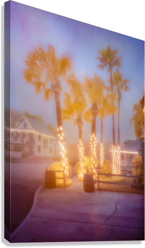 ABOUT THIS ARTWORK: ENCHANTING SAINT AUGUSTINE: PALM TREES AGLOW WITH CHRISTMAS MAGIC